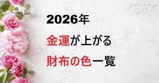 風水財布 【2026年】金運が上がる財布の色一覧|避けた方がいいNGカラーも解説 2026年は、財布の色選びが金運に大きく影響するとされる年です。特に2026年は「丙午(ひのえうま)」にあたり、選ぶ色によって金運・出費運に差が出やすいと考えられています。この記事では、2026年に金運アップが期待できる財布の色を【一覧形式... 09.30 風水財布